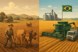 Hoje, o cenário é outro: tratores, colheitadeiras com GPS, drones e softwares de gestão agrícola revolucionaram a produção. A biotecnologia trouxe sementes geneticamente melhoradas, mais produtivas e resistentes a pragas. A tecnologia não só ampliou a produtividade, mas também abriu espaço para práticas sustentáveis.