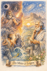 Foi justamente essa inquietação que marcou a grande virada do pensamento humano. Em determinado momento da história, especialmente nos portos e colônias da Grécia Antiga, alguns homens recusaram-se a aceitar o mito como resposta definitiva. Em vez de recorrer à revelação divina, passaram a perguntar se os fenômenos naturais não obedeceriam a causas inteligíveis. Esse gesto, aparentemente simples, inaugurou uma ruptura profunda: o nascimento da filosofia e, com ela, da atitude científica.